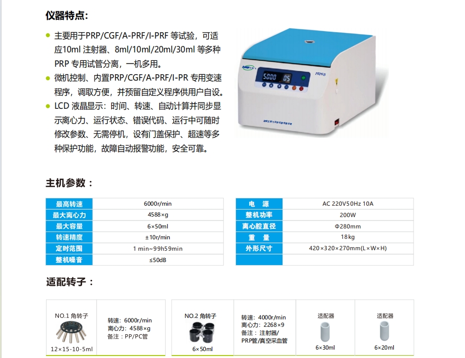 产品型号:PRP6B-R PRP/CGF/A-PRF/I-PRF